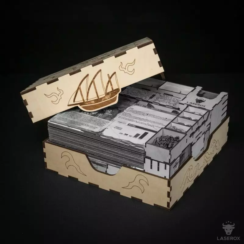 This crate was designed to hold the great game Spirit Island and its expansions in one beautifully designed wood box. This kit works together with our organizers for the base game and the expansions.