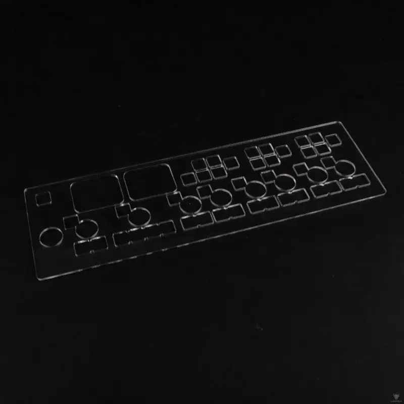 The overlay is made from 2mm transparent acrylic. It has a protective foil on both sides, which has to be removed before use.