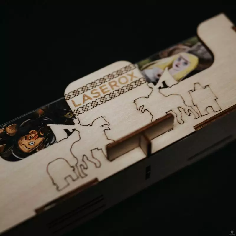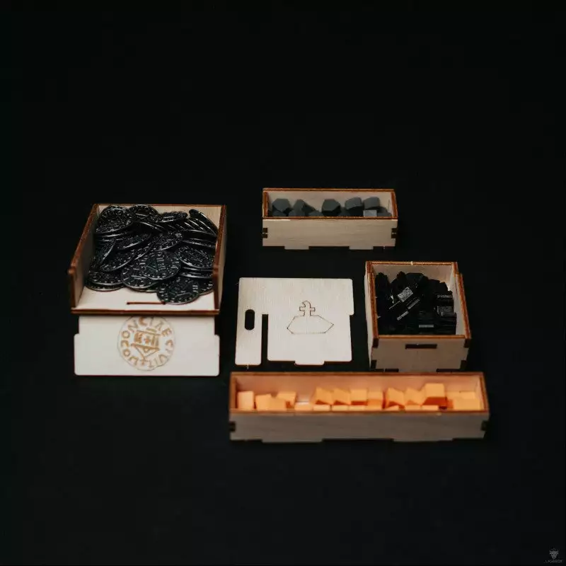 - wooden base for the castle that serves as a lid when the game is stored away
