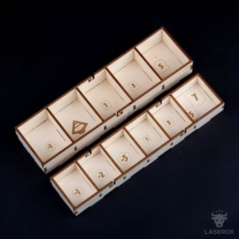 This organizer is a third-party accessory designed by Laserox. All product names are trademarks of their respective owners, which are in no way associated or affiliated with Laserox. The kit requires assembly, which takes around 30 minutes. We advise the use of wood glue, which is sold separately.