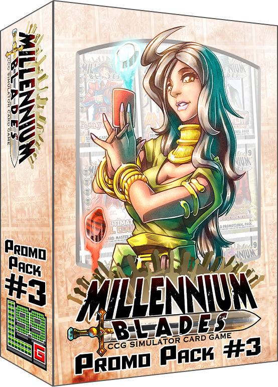 Millennium Blades: Promo Pack #3 introduces two new playable characters to the game: Raritti, a master of card fusion, and Shafille, a CCG archaeologist.