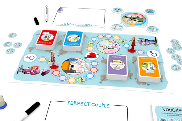 This board game is a party game for adults in which couples will face challenges and complete tasks to see if they know their significant other better than the other couples know each other!