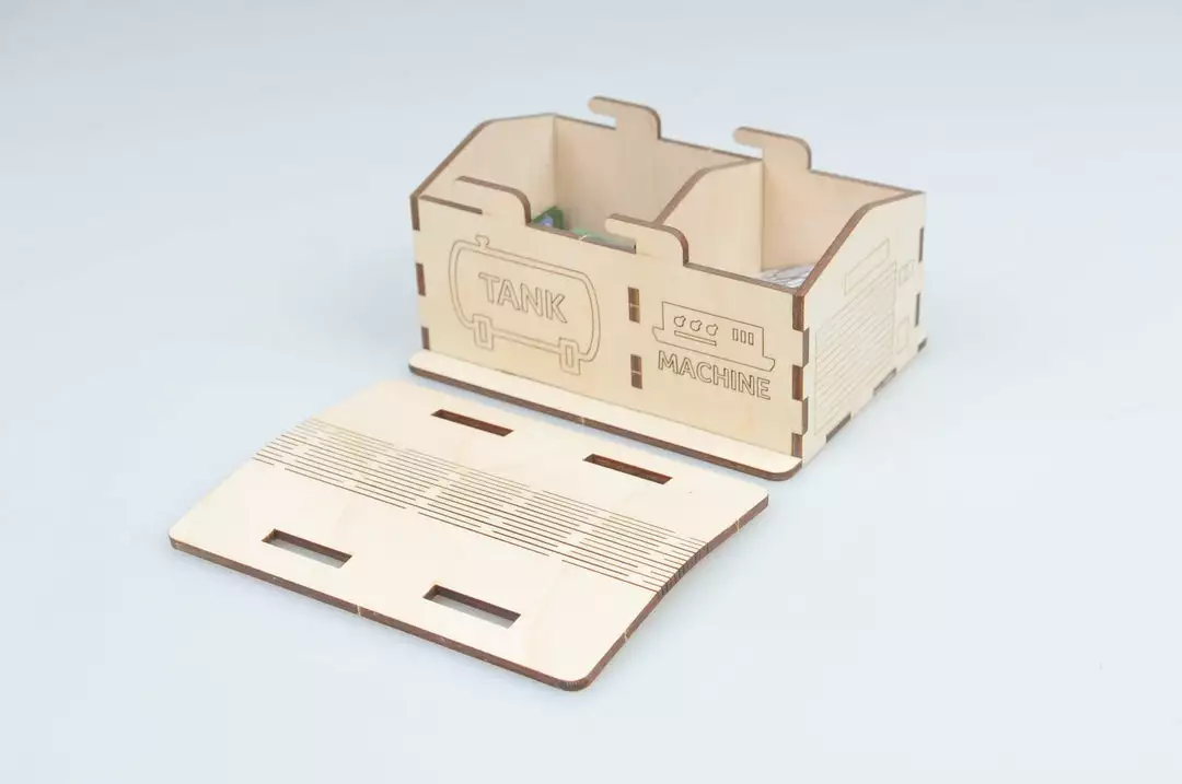 - A custom resource tray in the form of a tank farm and warehouse building.