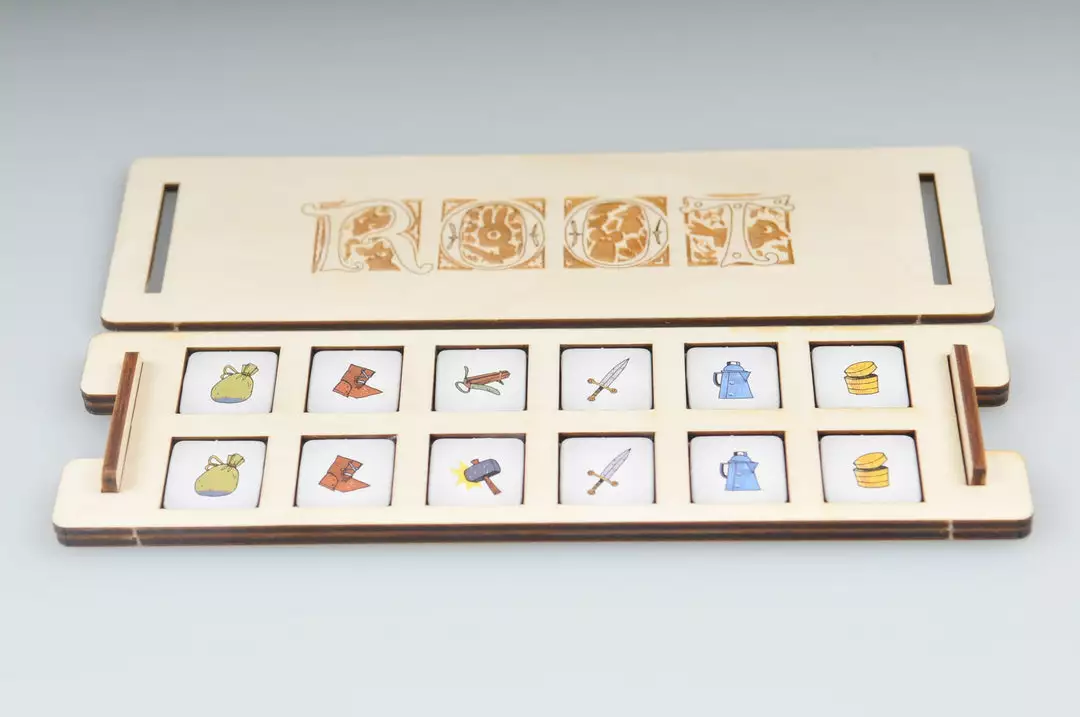 - Setup tray that also holds sleeved cards (we used Fantasy Flight sleeves in the design).