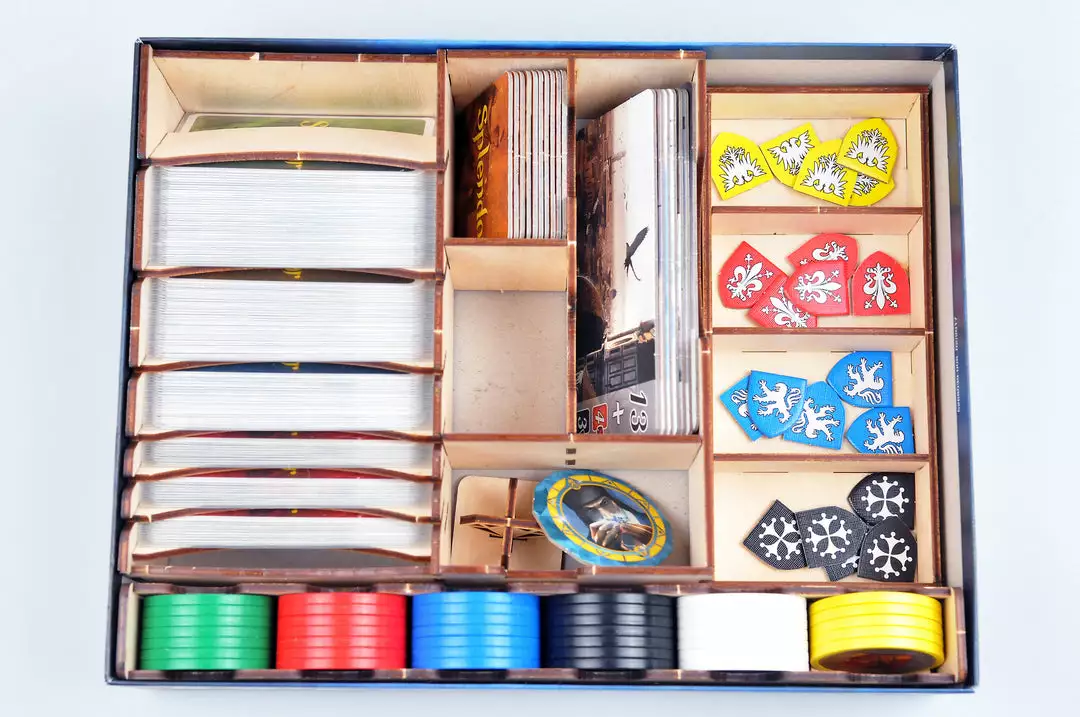 - Setup tray that holds the development cards, orient development cards, noble tiles, and city tiles.