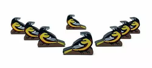This 8-piece set of painted wooden bird meeples replaces one player’s action cubes for Wingspan (any edition/expansion).
