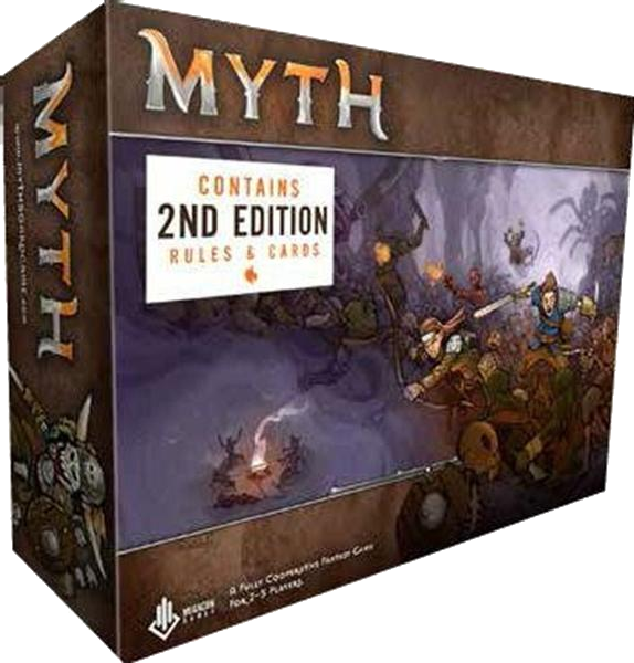 Myth is a fully co-operative fantasy game. Players take on the role of one of 5 different heroes working together to defeat the Darkness. Each hero has a different skill set which represented by a unique deck of cards. Players spend Action Points by using cards. Once a certain amount of Action Points have been spent the Darkness fights back by activating monster lairs, spawning monster captains and eventually the Boss.