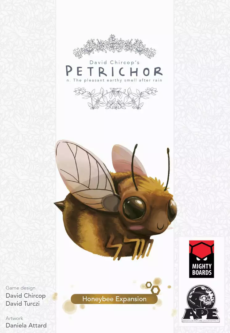 The second expansion to Petrichor deepens the game: bringing a new action, a new resource (honey), four new tiles, and a giant bee to fly around!