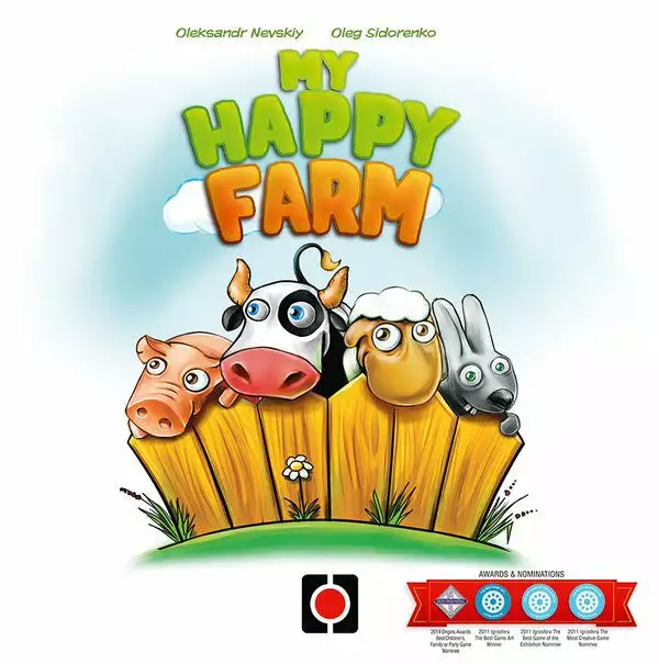 All players have their own farm with four nice animals. They feed those cuties. Animals which are fed well fill their stomachs with tasty food, grow and become longer and longer, even reaching unnatural lengths. The longer your animal, the better a farmer you are. The owner of the longest animal receives bonus points. Animals which aren’t fed even one time lose their weight, take offense, and leave their bad master. Moreover, they will take some victory points from the bad master to punish him, so players have to be good and careful farmers and feed their animals well to create Their Own Happy Farm.