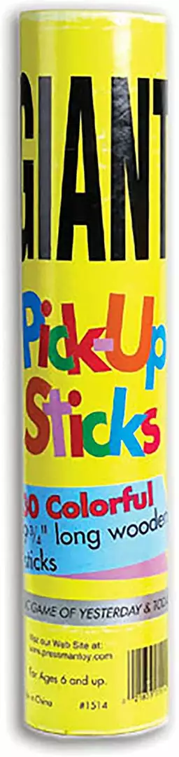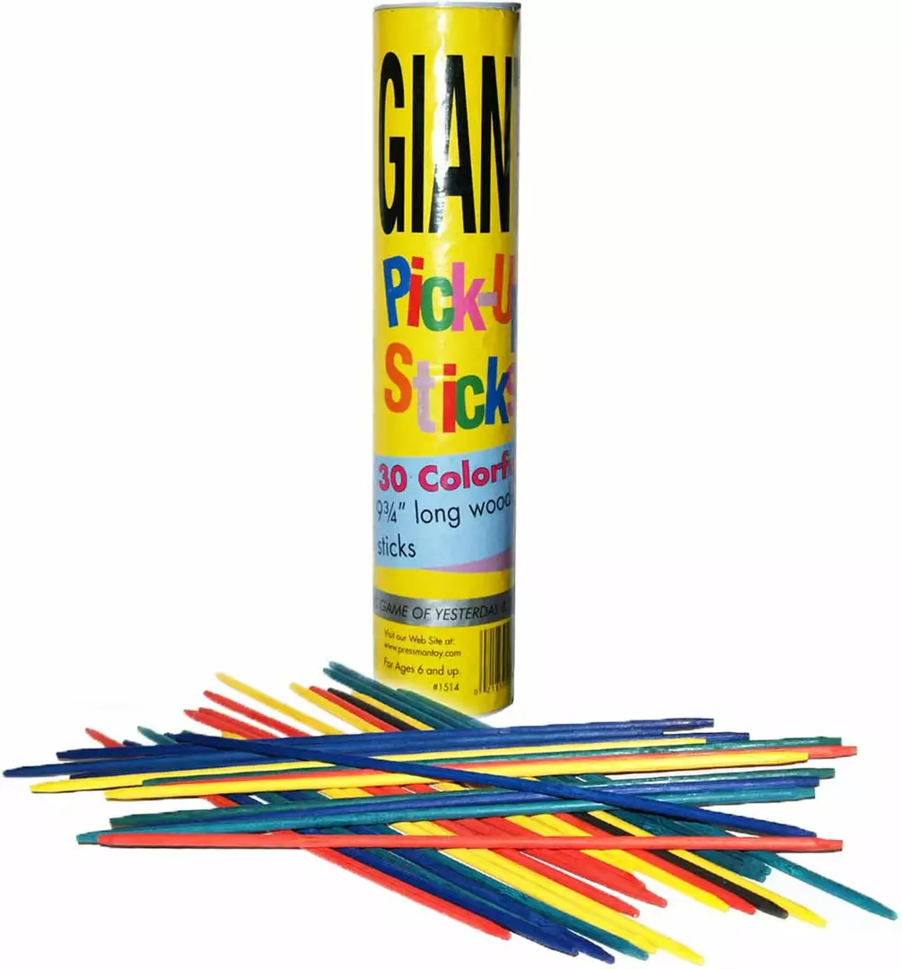Try to move and collect the colorful sticks carefully to win. These oversized sticks in bright colors are a perfect addition to your next game night. The game includes instructions and 30 colorful, 9 3/4” long wood pick-up sticks in a nostalgic, bright can!