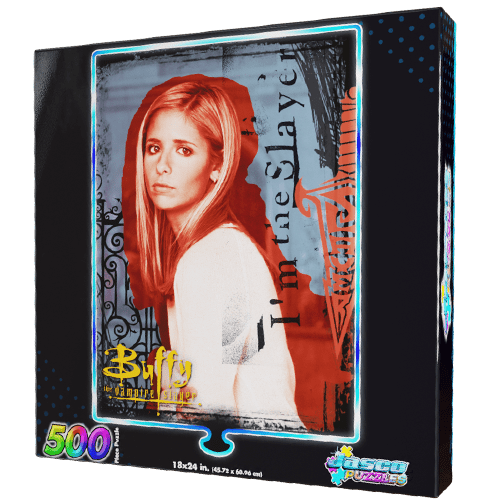 It’s time to return to Sunnydale! This 500 piece 18″x24″ Buffy the Vampire Slayer jigsaw puzzle features dazzling foil effects and vibrant colors.