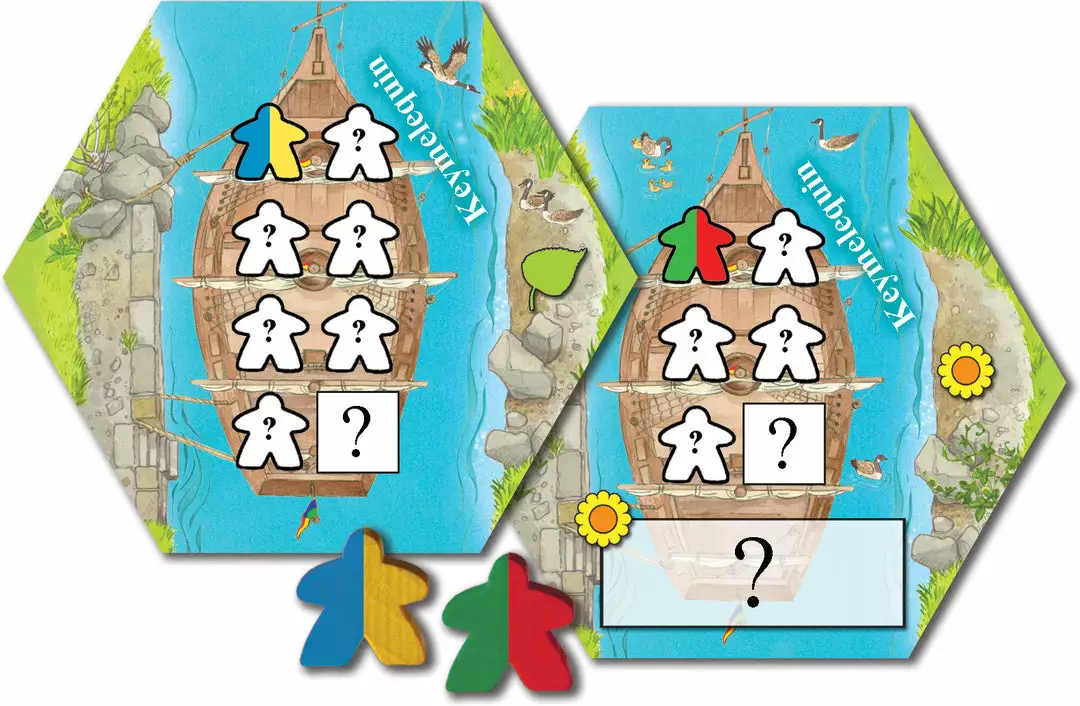 Keymelequin is a mini-expansion for the game Keyflower that consists of the two colored Keymelequin keyples — Paulo and Sven — and a ship tile, the Keymelequin.