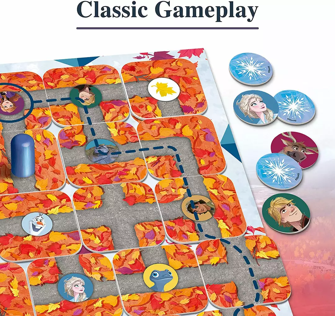 Who can find their way through the maze of snow and ice to discover the brave sisters Anna and Elsa, or find Olaf, the funny little snowman? If you can move the maze cards skillfully and tactically, you can create new paths where there were walls, and get to the heroes from the film Frozen! This item includes 1x Game Board, 17x maze cards, 12x tokens, 4x figures and instructions. This game is suitable for 2-4 players. Suitable for ages 4 years and up.