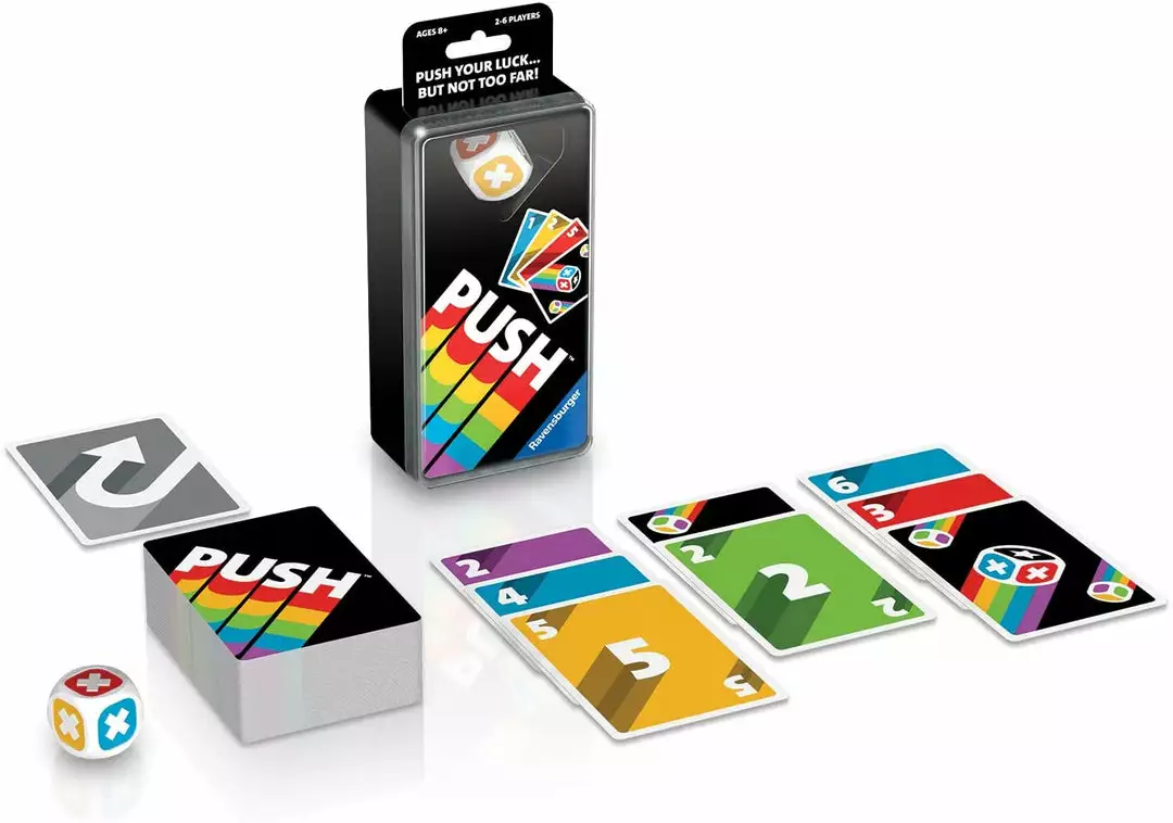 Push your luck…But not too far! Rack up points by playing cards to the stacks – but watch out! You can’t repeat a color or number. Choose when to stop and score the best stack or push your luck and go for more!