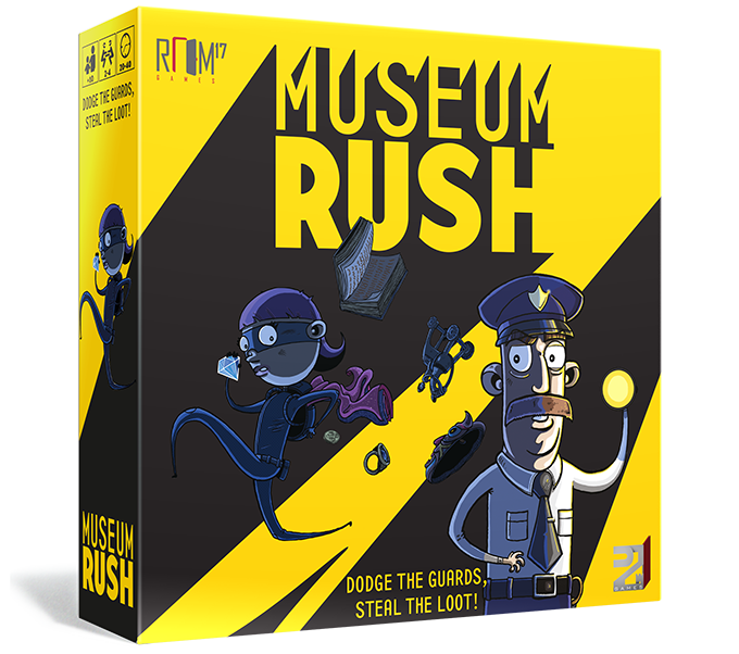 Museum Rush is a competitive thieving game in which players race against time to steal treasures from a museum while avoiding cameras, guards, and greedy rivals. Luckily these dastardly robbers have an array of items to help them get the better of the guards and their fellow thieves, such as sultry Llamas, mighty Underwear and the high-tech Cardboard Box.