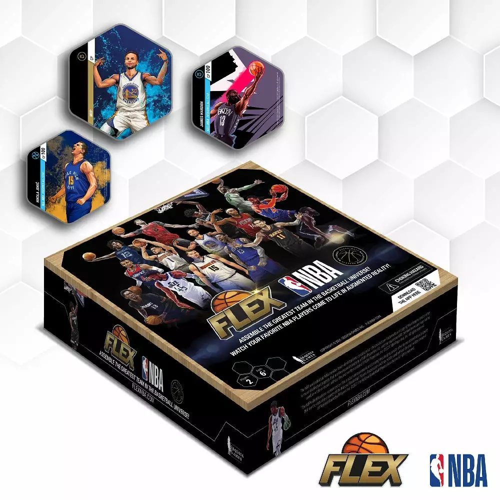 Flex NBA is the very first Battle Tile and Augmented Reality (AR) board game that fuses professional sports with the latest in augmented reality technology. Created in partnership with the NBA and NBPA, FLEX NBA lets fans play as their favorite NBA players, using their FLEX ‘superpowers’ to take down opponents!
