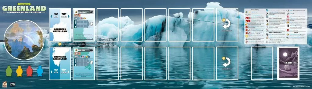 Double-sided, one side for Neanderthal, and the other for Greenland. Contains play aids.
