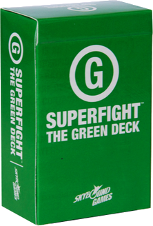 Superfight: The Green Deck — an expansion for the Superfight party game in which players pit unusual characters with superpowers and superweaknesses against one another — consists of one hundred kid-friendly cards from fairy tales to cartoons to food weapons.