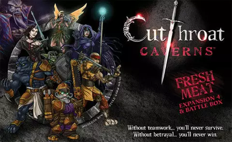 Fresh Meat, the long-anticipated fourth expansion to Cutthroat Caverns, is truly an expansion “of the fans, for the fans” as it includes everything players have been begging us for, including 12 unique pre-generated characters, 34 Reputation cards that can be used to custom create your own unique characters, 13 new cards for the main deck (a first), 23 nasty new Encounters (the most offered in any expansion to date, many of which were inspired by fans in our “Create an Encounter” contest) 7 new Events, 12 new Relics, a new custom character mechanism, and a giant Battle Box in which to store your entire Cutthroat Caverns collection.