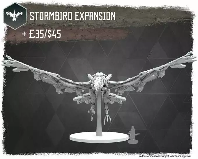 The Stormbird expansion allows players to upgrade their quarry to the next level, and test themselves against this daunting creature. It includes a highly detailed model for this incredible machine, as well as rules, cards, and special tiles for the encounter.