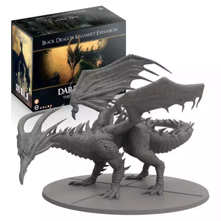 This Dark Soulsâ„¢: The Board Game expansion features a terrifying new mega boss in the form of Black Dragon Kalameet. Included are a new gigantic mega boss tile, deadly new boss behaviours, cards for the brand-new Strafe attacks, tokens for the new Calamity condition, and unique new boss treasures.