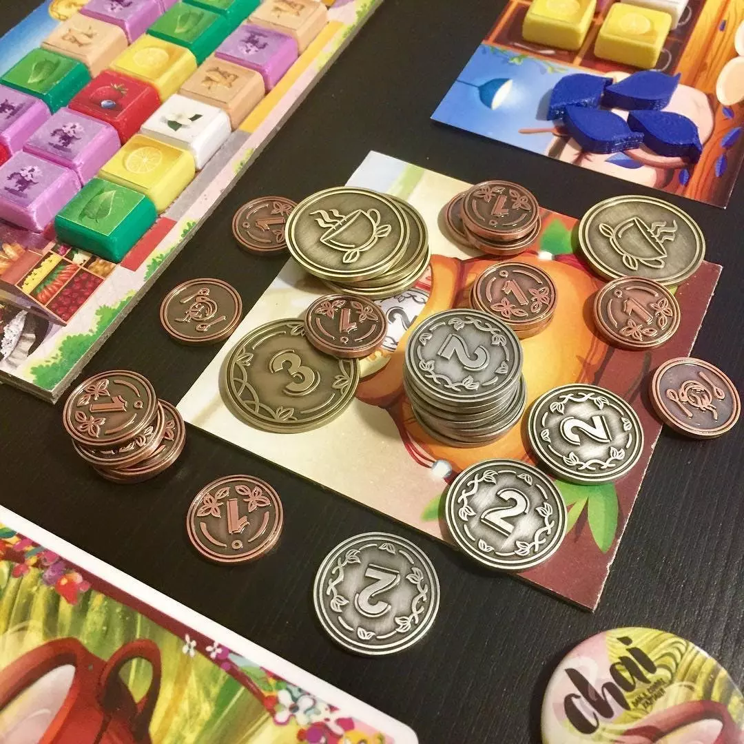 The player with the most victory points (from customer orders, money, and awards) wins the game as best tea merchant! In the case of a tie, the person with the least number of fulfilled customer cards wins. If still tied, the person with the least amount of money wins. If that does not break a tie, the victory is shared.