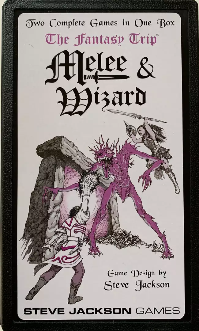 Originally released in 1977 and 1978, the two first releases in The Fantasy Trip series, Melee and Wizard, were out of Steve Jackson’s reach during the eighties when the classic Pocket Box was first produced. Finally, we’re able to present these two great games in an 80s-styled package, aking this the “What If?” edition you’re sure had to have existed in the early days of gaming.