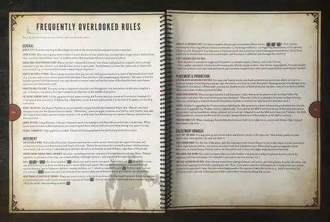 The Scythe Complete Rulebook (spiralbound version) is a 136-page compilation of all Scythe rules and clarifications.