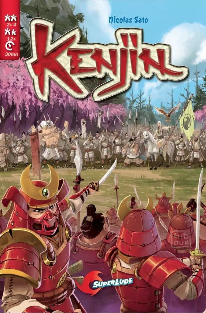 Kenjin is a quick and subtle card game of bluffing and tactics. You share two random battlefields with each of the players next to you: one worth 4 points, the other 6.