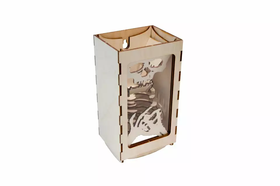 The Bones design displays a sinister skeleton that swallows your dice whole.