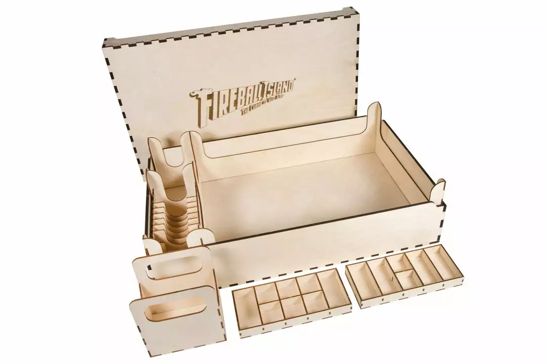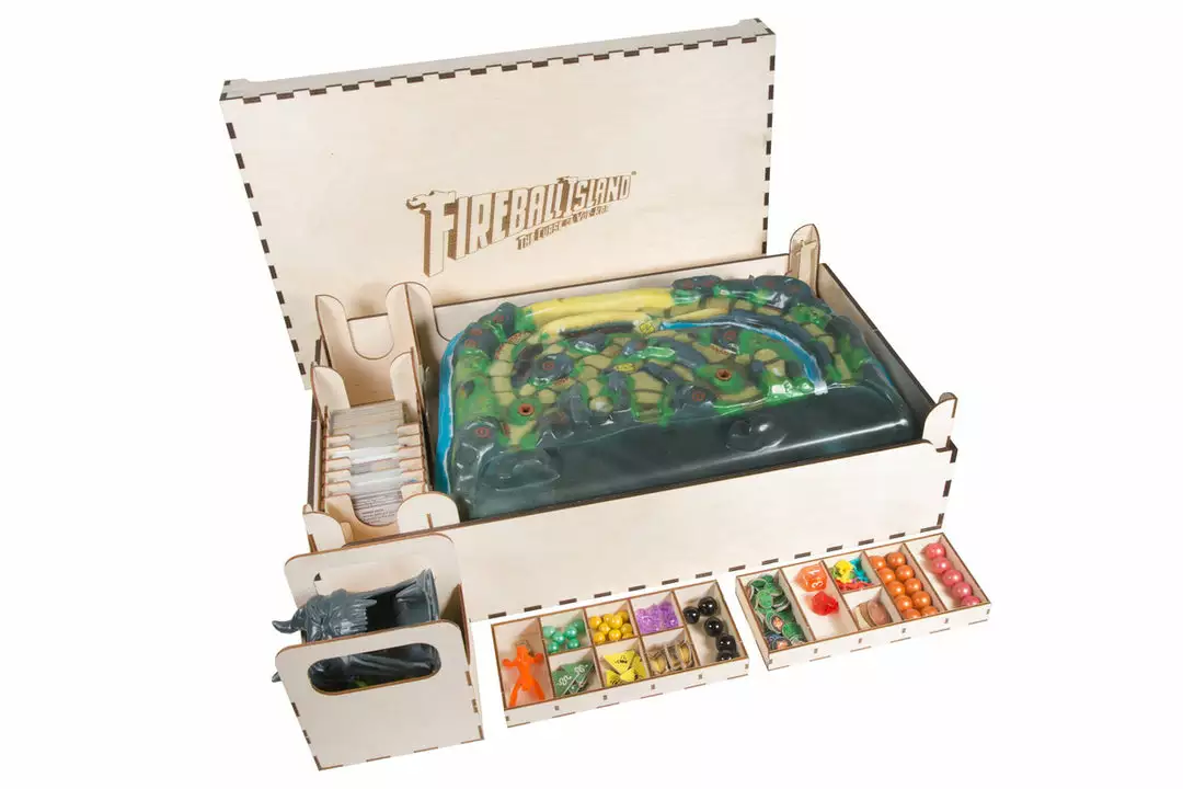 Accommodates base game and the following expansions: Wreck of the Crimson Cutlass; Treasure Trove; The Last Adventure; Crouching Tiger, Hidden Bees!, promo cards, and our premium upgrades: Fireball Island Upgrades: The Maw and Hello-Copter.