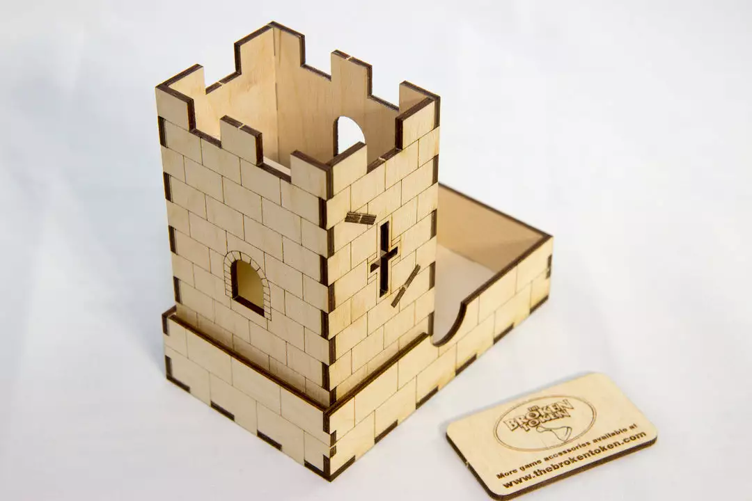This mini dice tower folds for easy travel and looks great in the middle of any gaming table. This tower ships as a kit that you easily snap together in minute, no glue required!