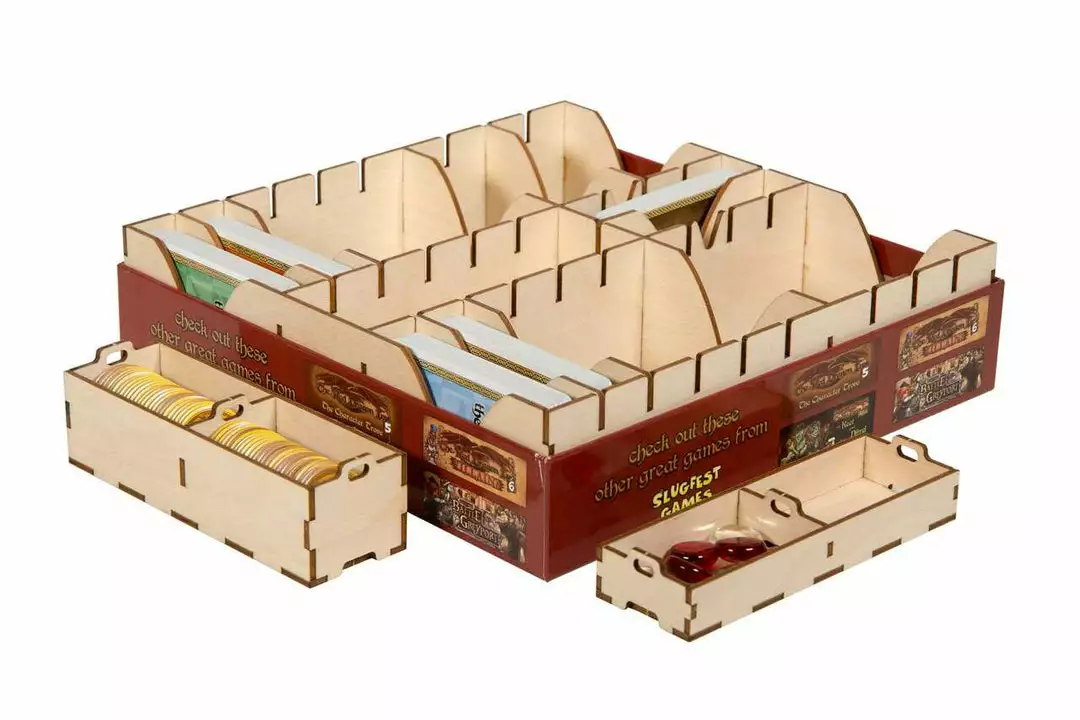 This is an officially licensed box organizer compatible with Red Dragon Inn by SlugFest West Games, LLC. SlugFest, Red Dragon Inn and their logos are trademarks of SlugFest West Games, LLC, Oakland, CA 94610, USA https://slugfestgames.com