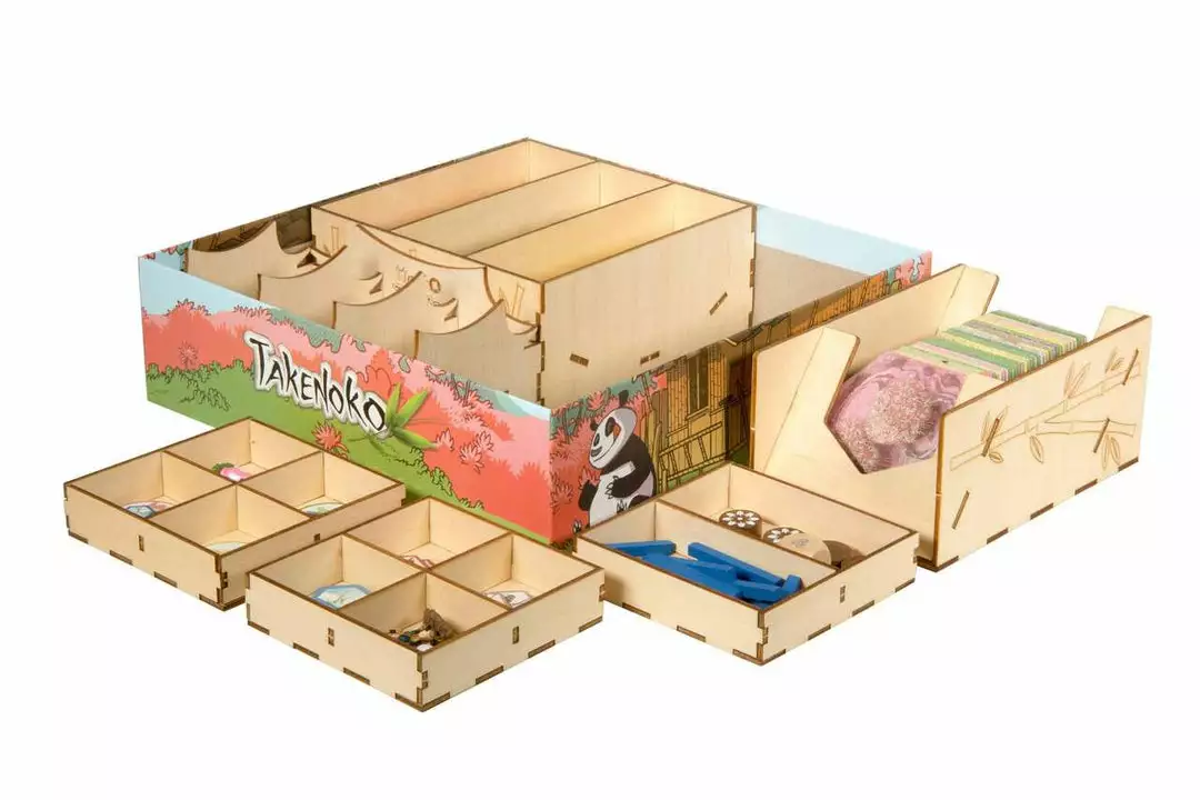 This is an officially licensed box organizer compatible with Takenoko by Matagot SAS. Takenoko, Matagot SAS, and their logos are copyright by Matagot SAS, 35 Rue du Tondu 33000, Bordeaux, France.