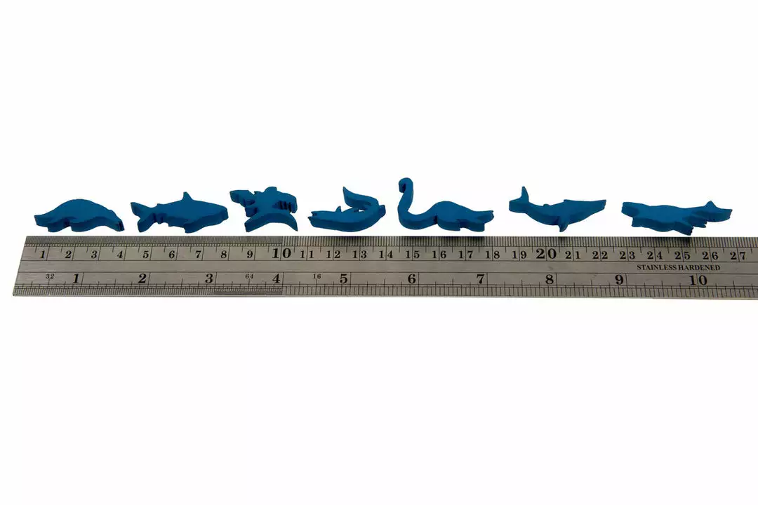- Â Each Dinomeeple is maximum of 38.6mm x 31.5mm (1.5″ x 1.2″) on the longest side, and 6.05mm (.24″) thick