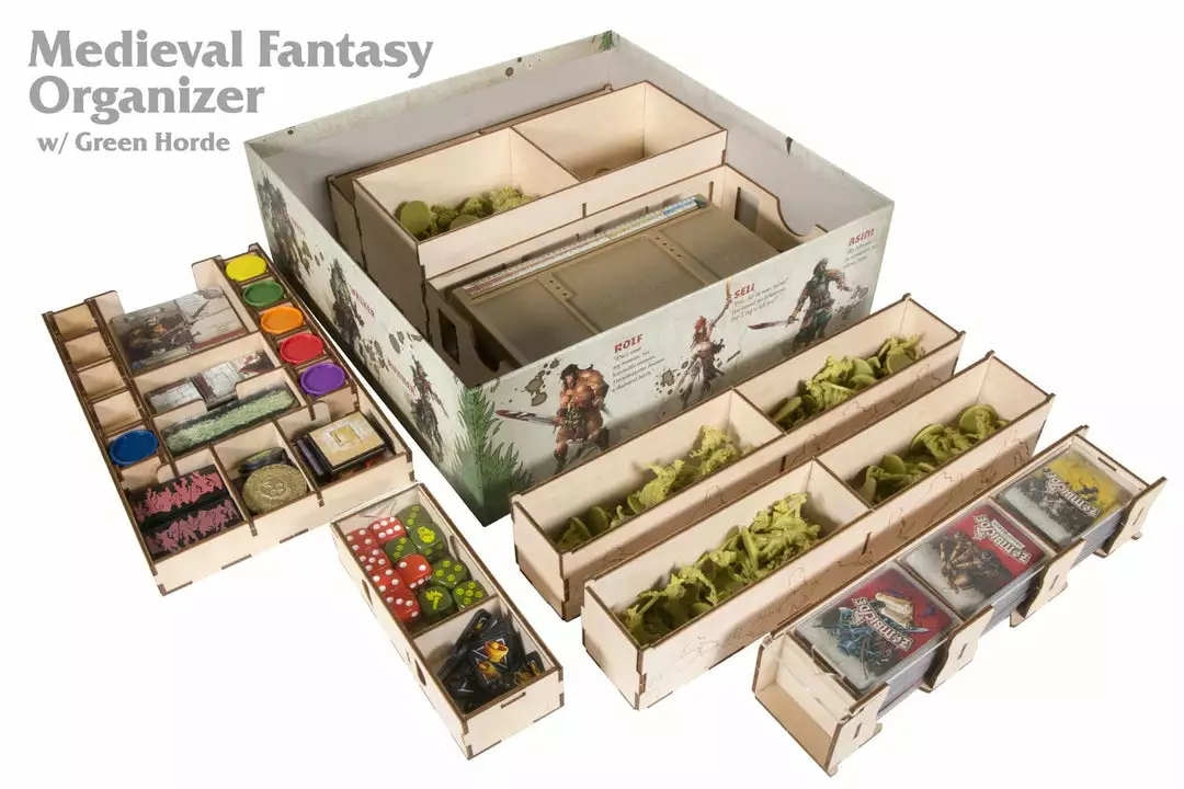 Zombicide Medieval Fantasy Horde Chest (GCA032): Want to keep things simple? If you went all in on the kickstarter you can store everything in this premium, thematically engraved crate. Accommodates 10-player capacity for Black Plague and Green Horde, as well as all the Kickstarter exclusives and optional buys. Some repeated components will need to be stored separately
