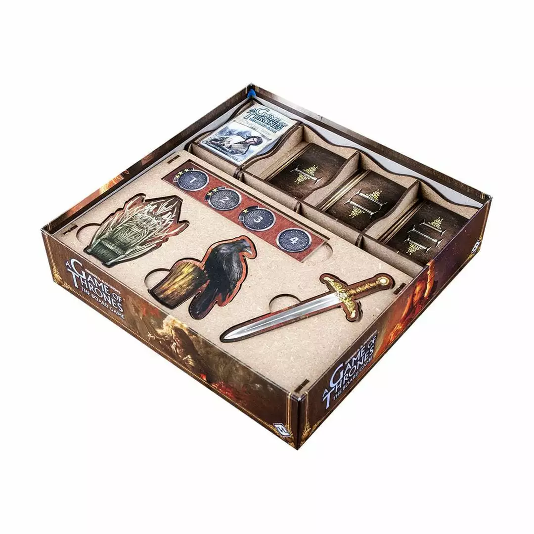 Organizer compatible with A Game of Thrones: The board game (second edition). It also hosts the expansions A feast for crows and A dance with dragons.