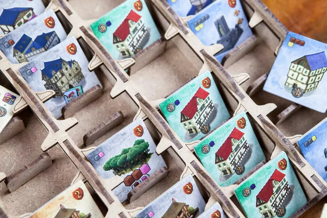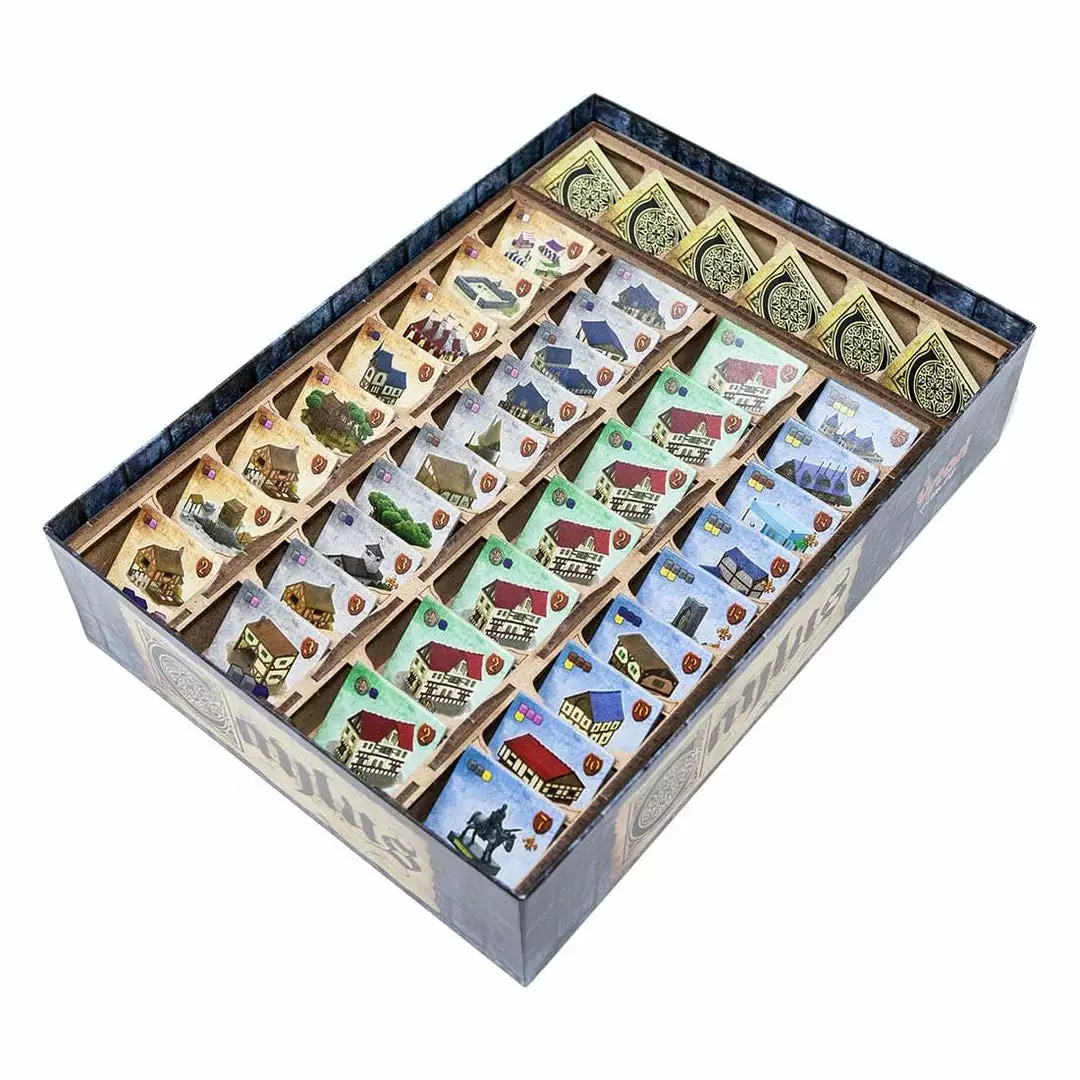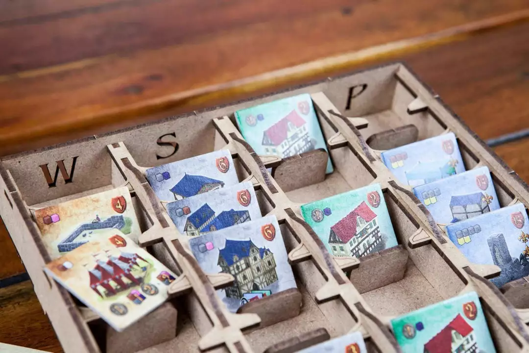 • 1x building tiles box. Specific space for each tile and arranged housings for better use and visibility during gameplay;