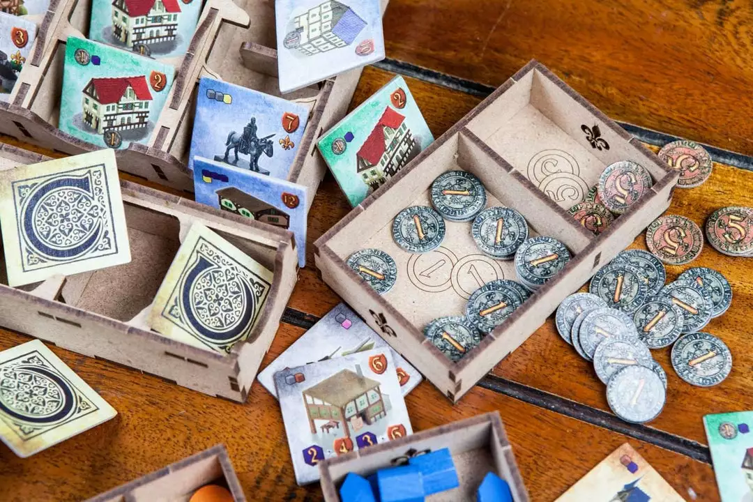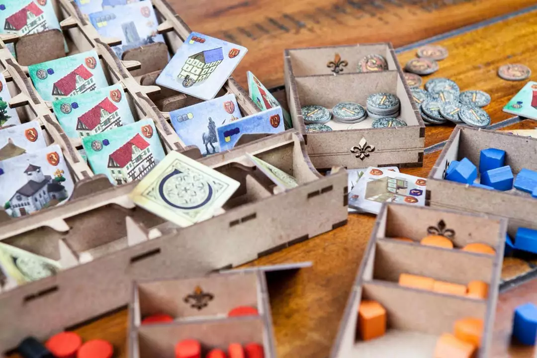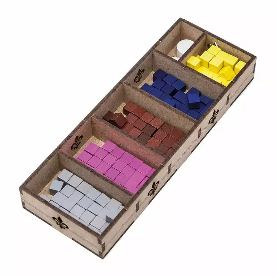 • 1x resource box with 5 housings +1 for Bailiff and Provost pawns;