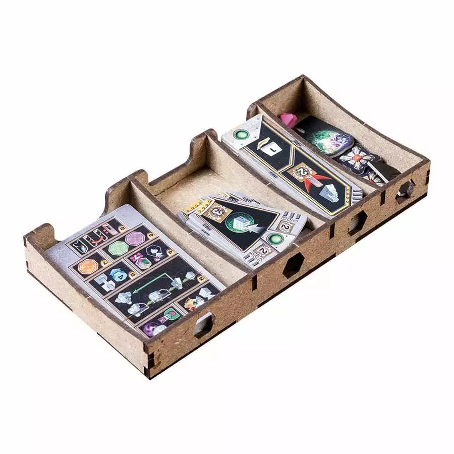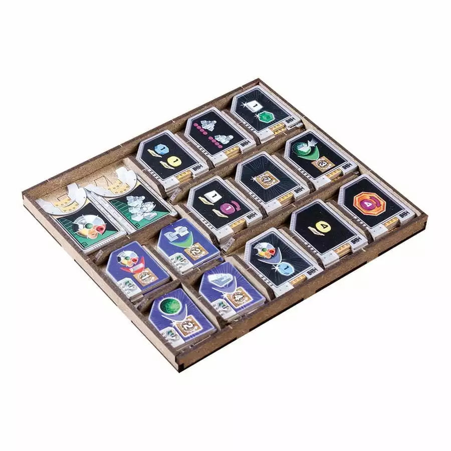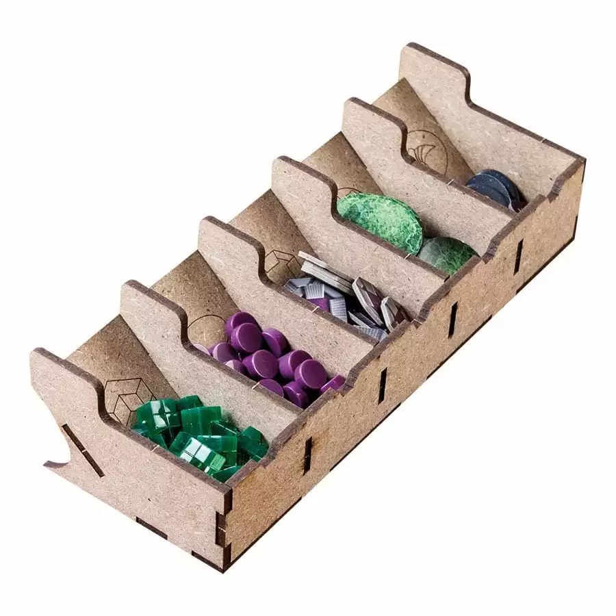• 1x card holder (space for sleeved 60 microns cards, eg Sapphire) and spare tokens, with 4 slots.