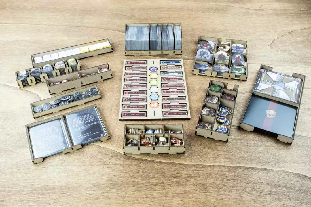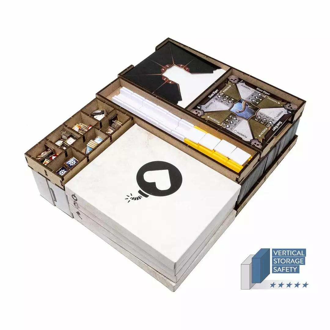 Size of assembled organizer: 27.9 x 21.5 x 7.7 cm – Important: Due to manufacturing, printing, and edition differences, box sizes can vary and may not be compatible with the version our products were designed for. Please measure the bottom inside of your game box to confirm fit for the organizer dimensions listed above. Note: Some new prints of the game include larger initiative order tokens. These need to be arranged slightly differently to fit, for further information please check the instructions.