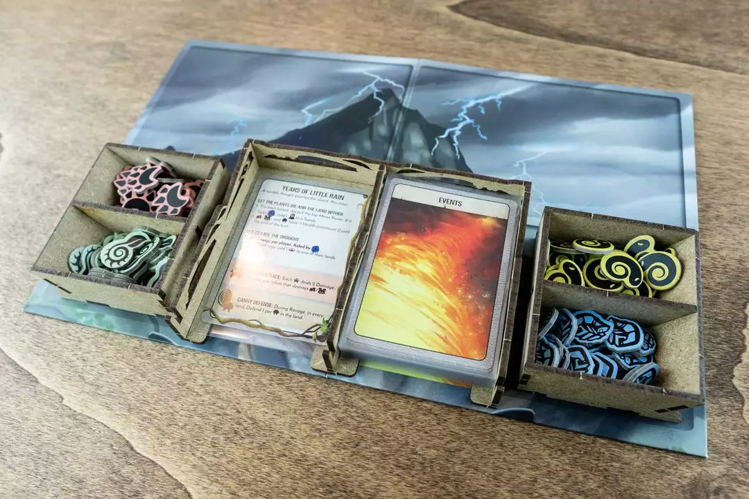 Organizer compatible with Spirit Island (Base game or with Branch and Claw exp). This organizer can fit alternatively just the base game or base game + expansion.