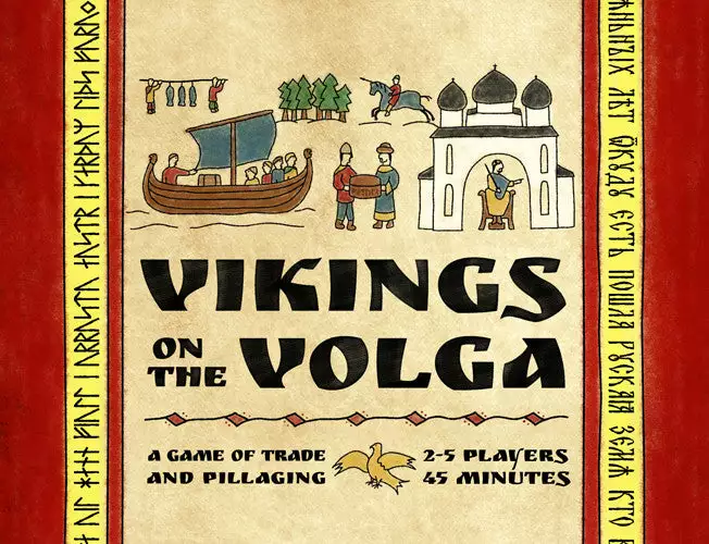 In Vikings on the Volga, players take turns sailing down rivers, trading goods, bribing officials, and looting cities. Careful planning pays off, but when things go wrong you can always go a-viking. On your turn, you either move your ship (to buy and sell goods at cities), or you move the horde (to burn cities), or you move the prince (to rebuild cities). The goal is to be the richest Viking, with the game ending when someone hits 30 rubles or five cities have been burned.