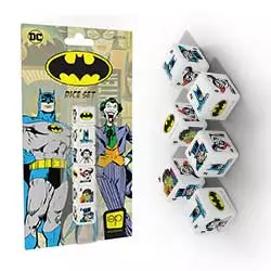 Take a DC Comic hero and villains to your next game night with this Gotham City-approved set of dice! This 6-sided dice set features your favorite characters from the classic Batman comics including Joker, Two-Face, Harley Quinn, The Penguin, and the Caped Crusader himself.