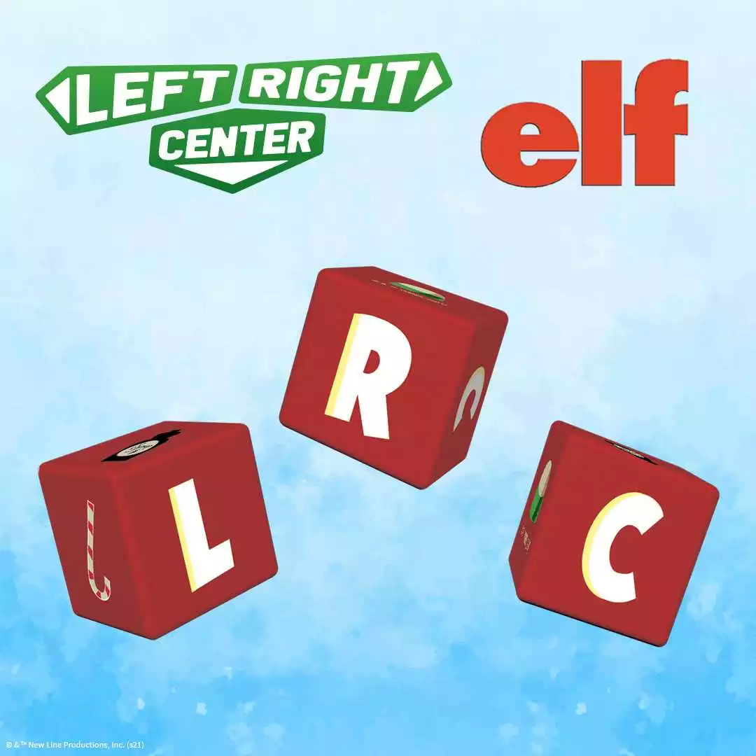 A long-time family and party favorite, Left Right Center (LRC) is an easy-to-learn dice game anyone can play and win! Roll the dice, move the tokens. The last player with tokens takes home the prize! In this edition, play with Elf-themed dice, tokens, and travel-friendly tube, making this game a sure bet for fun at your next gathering.