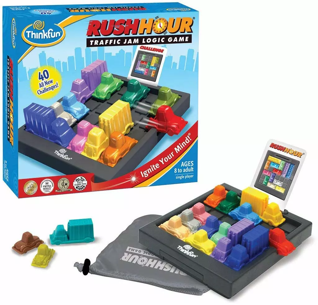 - What you get – Rush Hour is the classic traffic jam logic game and one of the all-time most popular STEM toys and gifts for boys and girls ages 8 and up. Contains 40 challenges from beginner to expert, a game grid, cars, and a game-go storage bag.