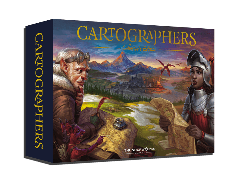 In addition, Cartographers Collector’s Edition includes plenty of empty space to store the original Cartographers: A Roll Player Tale, plus all the mini-expansions to date, even when sleeved!