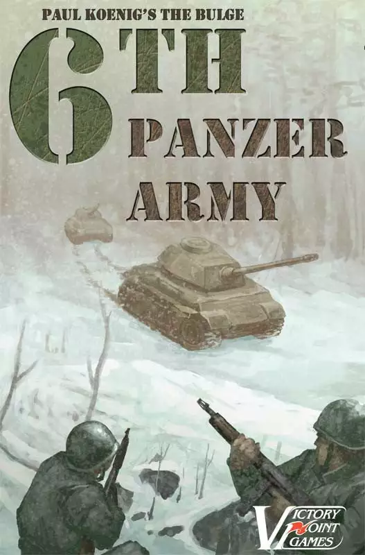 After storming the beaches in his D-Day series, and fresh from air landing in his Market-Garden series, designer Paul Koenig invites you to collect another World War II European Tour travel sticker, this time from the first 3½ days of the German 1944 winter offensive known as “The Battle of the Bulge.” In this first game of a new series, 6th Panzer Army takes you to the northern sector of this famous salient where Allied forces grimly confronted a winter onslaught by Hitler’s vaunted Panzers in the rugged Ardennes Forest. As a player, you must command your German or Allied forces so as to capture the objectives on the board while keeping your casualties down (and your opponent’s casualties high).