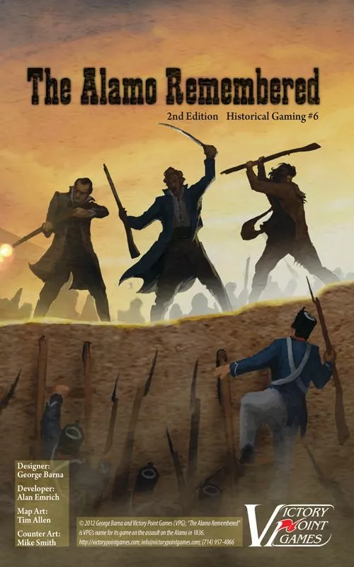 The Alamo Remembered is a quick, 1-2 player, historical game covering those dramatic minutes when legends were made at the Alamo. In this game of bluff and counter-bluff, command the Texian or Mexican units, defending or attacking the walls of the Alamo.