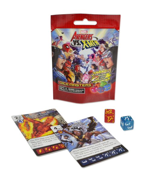 Each Marvel Dice Masters: Avengers vs. X-Men Foil Pack contains 2 cards and 2 dices.